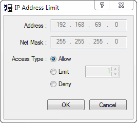 Tips: The combination of the Address and Net mask fields allows the user to allow or block both specific TCP/IP address and entire subnets.