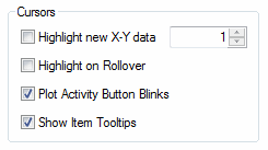Tick this check box to allow pens to be highlighted within plots. The highlight feature is activated by moving the mouse over the required pen in the Item Details Area. Highlighting works by trebling the line thickness of the chosen pen.
